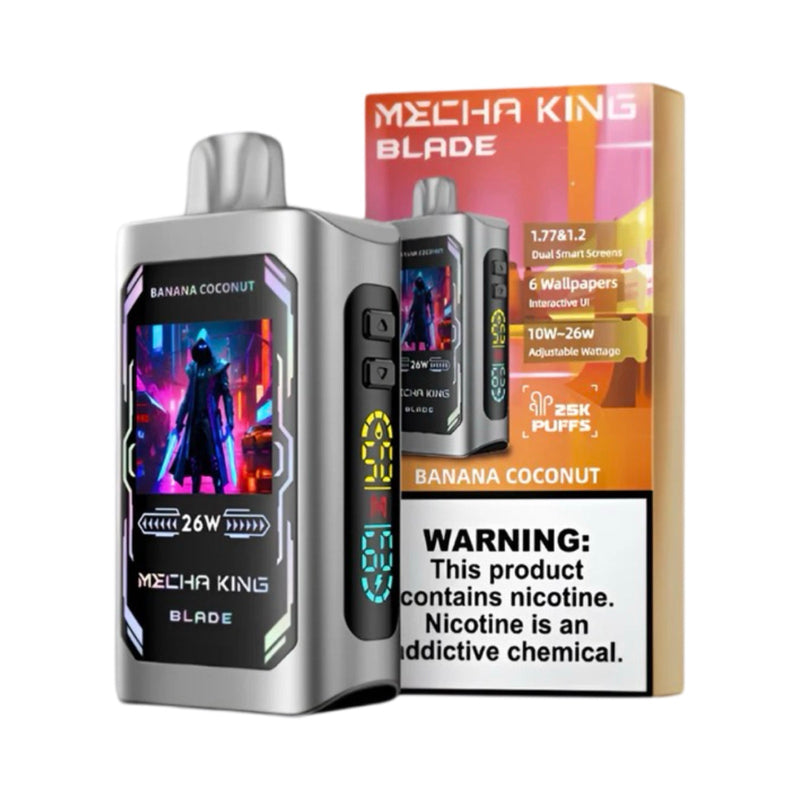 If you think you've tried it all in the world of disposable vapes, think again. The Mecha King Blade 25000 is here to redefine your expectations. With its staggering 25,000 puff count, high-performance dual mesh coils, and bold Banana Coconut flavor, this device isn't just a vape—it's a statement. Whether you're a seasoned vaper or just stepping into the game, this masterpiece is designed to deliver flavor, performance, and style like never before.
