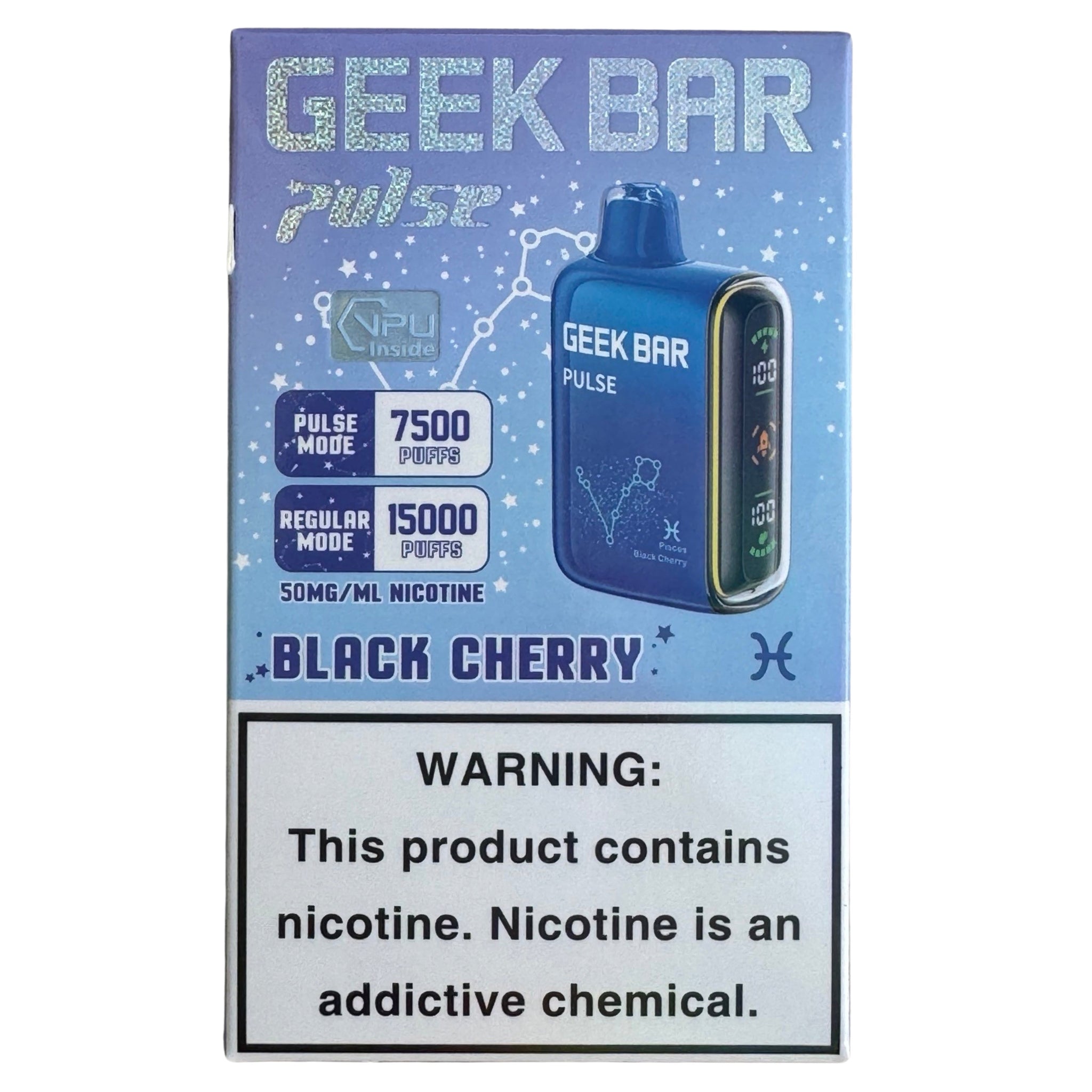 - Complexity Perfected. Its unparalleled complexity sets Black Cherry - Geek Bar Pulse 15000 apart. It's not just about sweetness; it's about layers of flavor that dance on your tongue with every puff. From the initial burst of ripe cherry to the subtle undertones of earthiness and sophistication, this vape is a symphony of sensations that will leave you craving more.