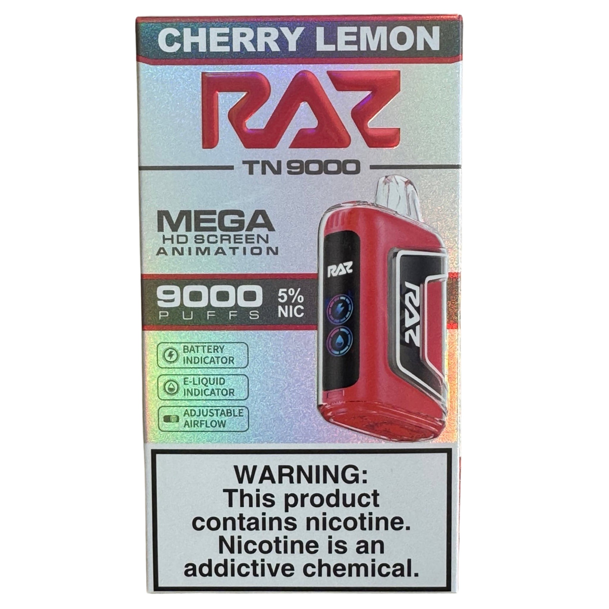 - Nicotine Level. Catering to vapers of all preferences, the RAZ TN9000 Cherry Lemon offers a nicotine level of 50mg. Whether you prefer a mild buzz or a more substantial hit, our device provides a customizable vaping experience to suit your needs. Say goodbye to one-size-fits-all solutions and hello to personalized satisfaction with every inhale.