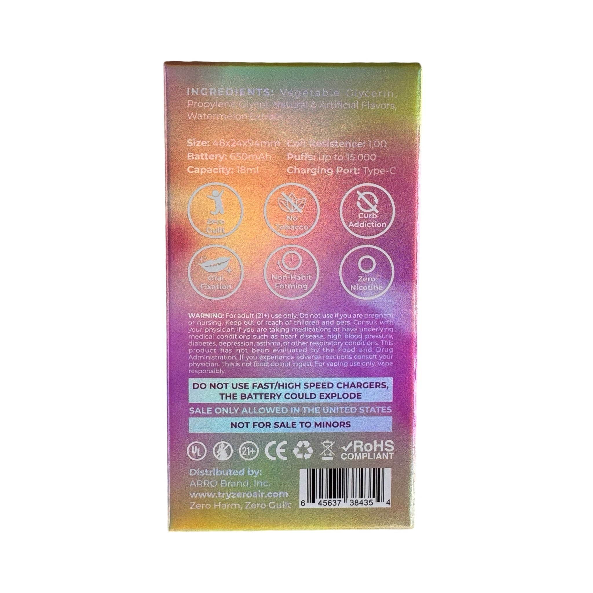 - Zero Guilt: With no tobacco and no nicotine, the Arro Ultra 15000 is designed for a guilt-free vaping experience.