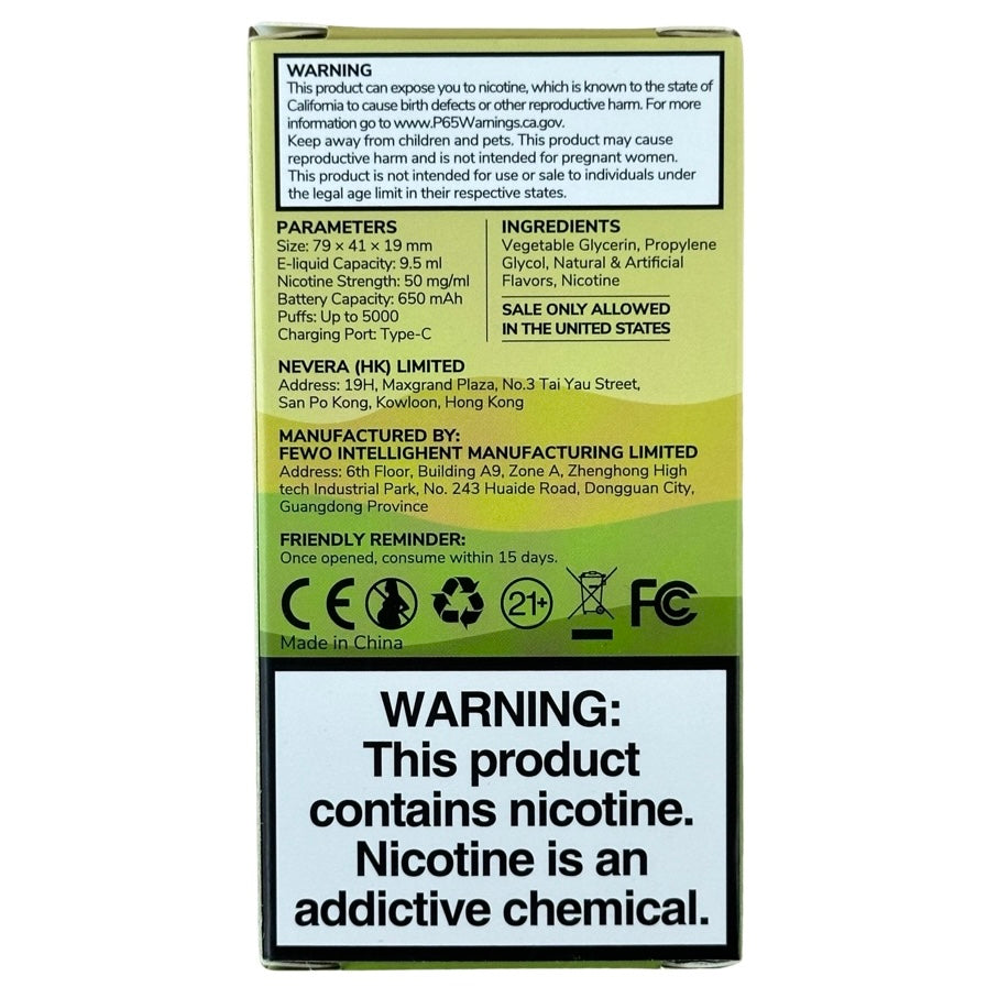 The powerhouse behind this device is a 650mAh battery, designed to keep up with its promise of delivering 5,000 puffs consistently. The synergy between the battery and the device's design guarantees an unparalleled vaping journey.